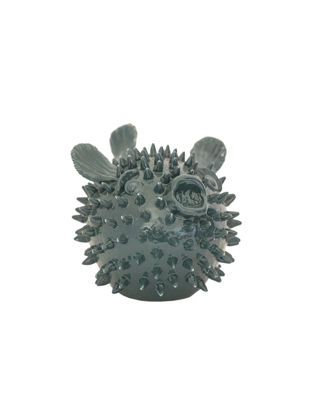 Pesce palla in ceramica di Caltagirone nella tonalità del verde ottanio. E' una creazione artigianale Made in Italy modellata e decorata interamente a mano.